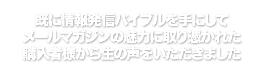 「メルマガで稼ぐためにはコピーライティングが必須」と言われている時代にあって、コピーライティングが裸足で逃げ出すほど圧倒的に密度の濃いメルマガノウハウを今すぐ無料で手に入れてください。